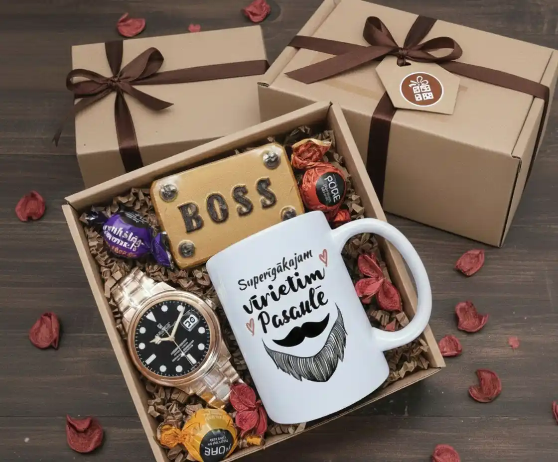 – Smaržīgas ziepes “Just Magical”- 2gb. – Krūze ar apdruku 330ml.- 1gb. – Konfektes “Pure”~ 3gb. – Dāvanu kaste un dekors